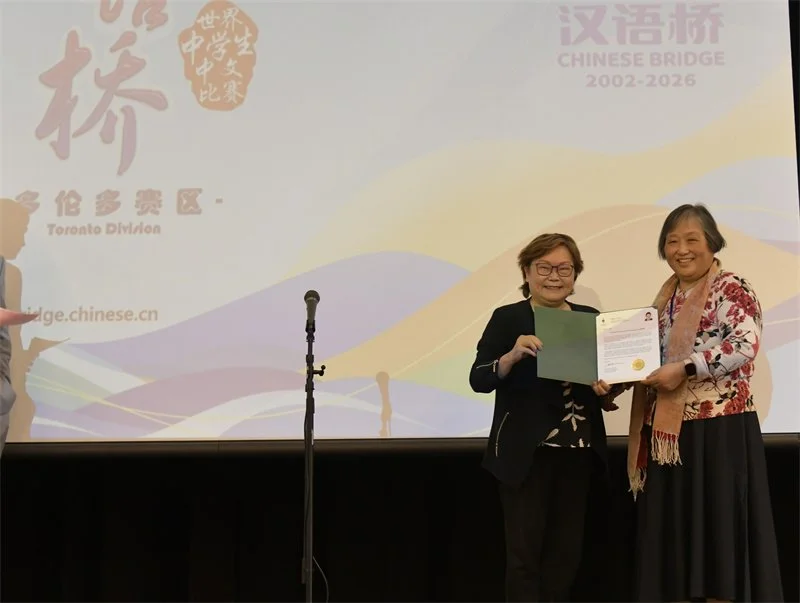 中国驻多伦多总领馆参赞衔领事张萌表示,中文作为世界上使用人数最多的语言之一,不仅承载着五千年中华文明的智慧,也正日益成为通向未来、联通世界的金钥匙。无论是了解中国的文学艺术、探索中医药的奥秘,还是拓展国际商务合作,掌握中文都意味着更多的机遇与可能。愿同学们都能获得这把金钥匙,开启通往中国、通往世界的广阔天地。
