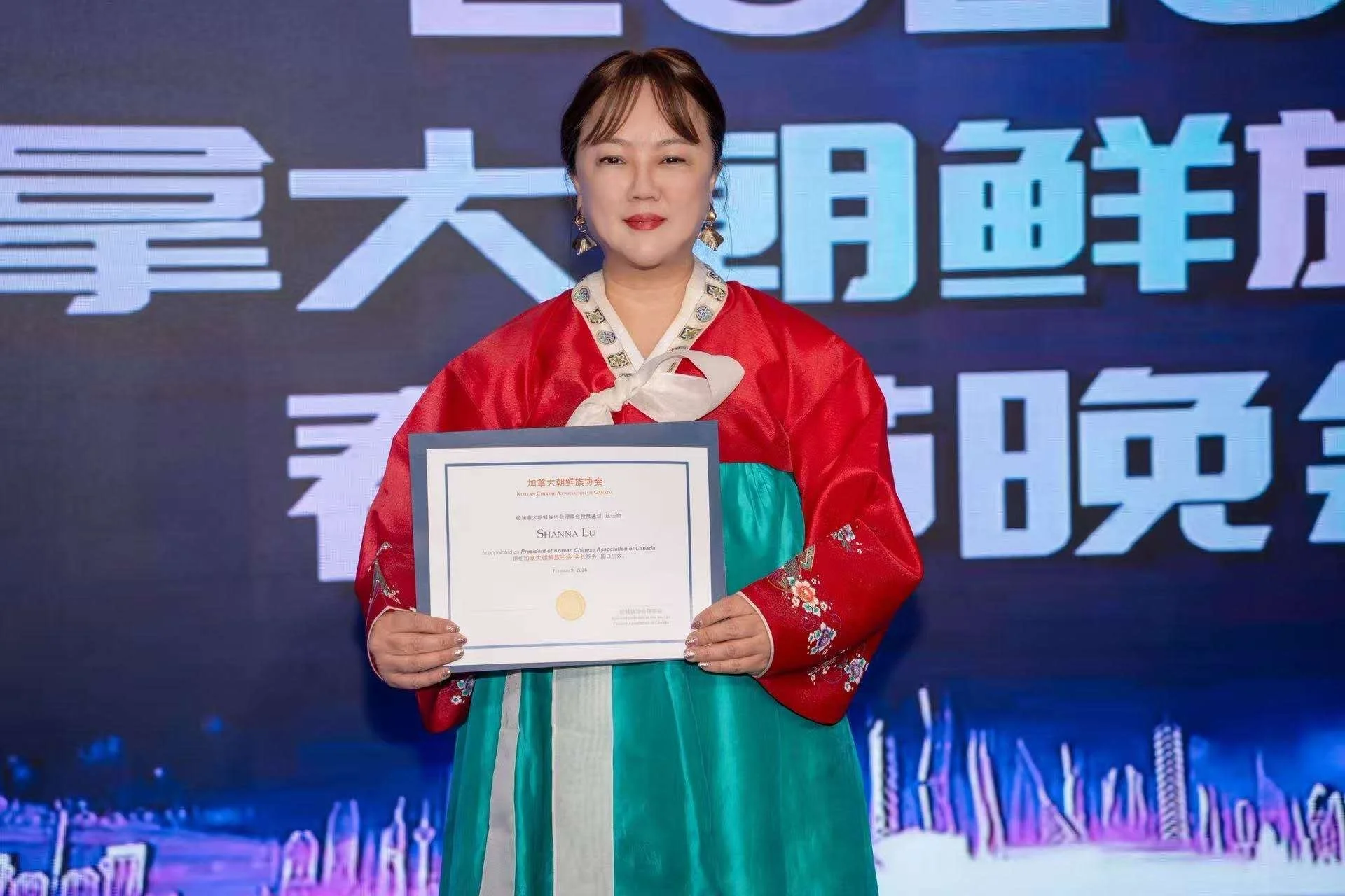 朝鲜族协会新任会长Shanna Lu 接受聘书