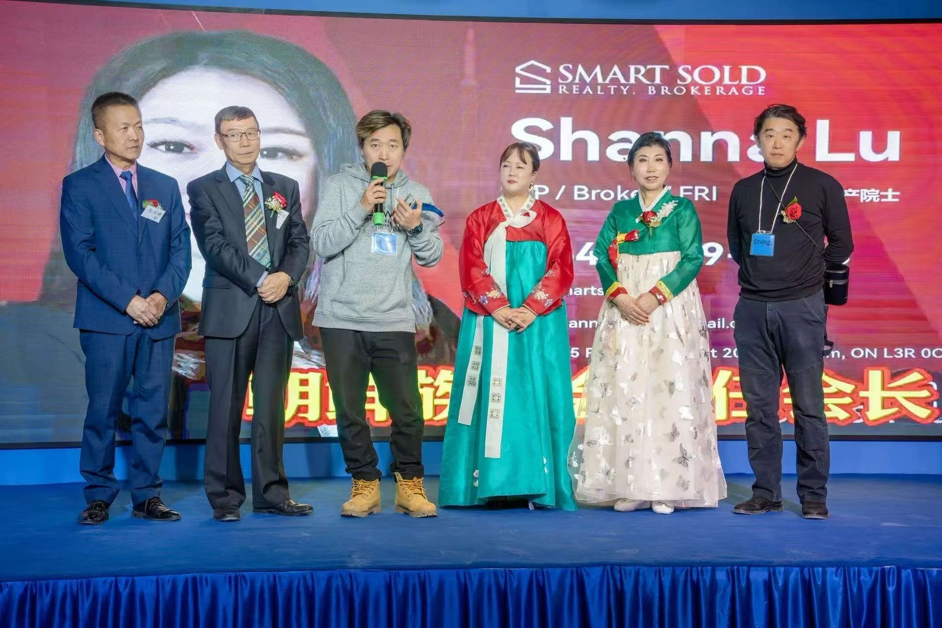 当晚的重要环节之一,是加拿大朝鲜族协会第五届会长交接仪式。理事会会长崔海燕宣读会长更替通知,并主持交接仪式。新任会长 Shanna Lu 从上一任会长手中郑重接过象征协会精神与责任的会旗和聘书,并发表就职讲话。