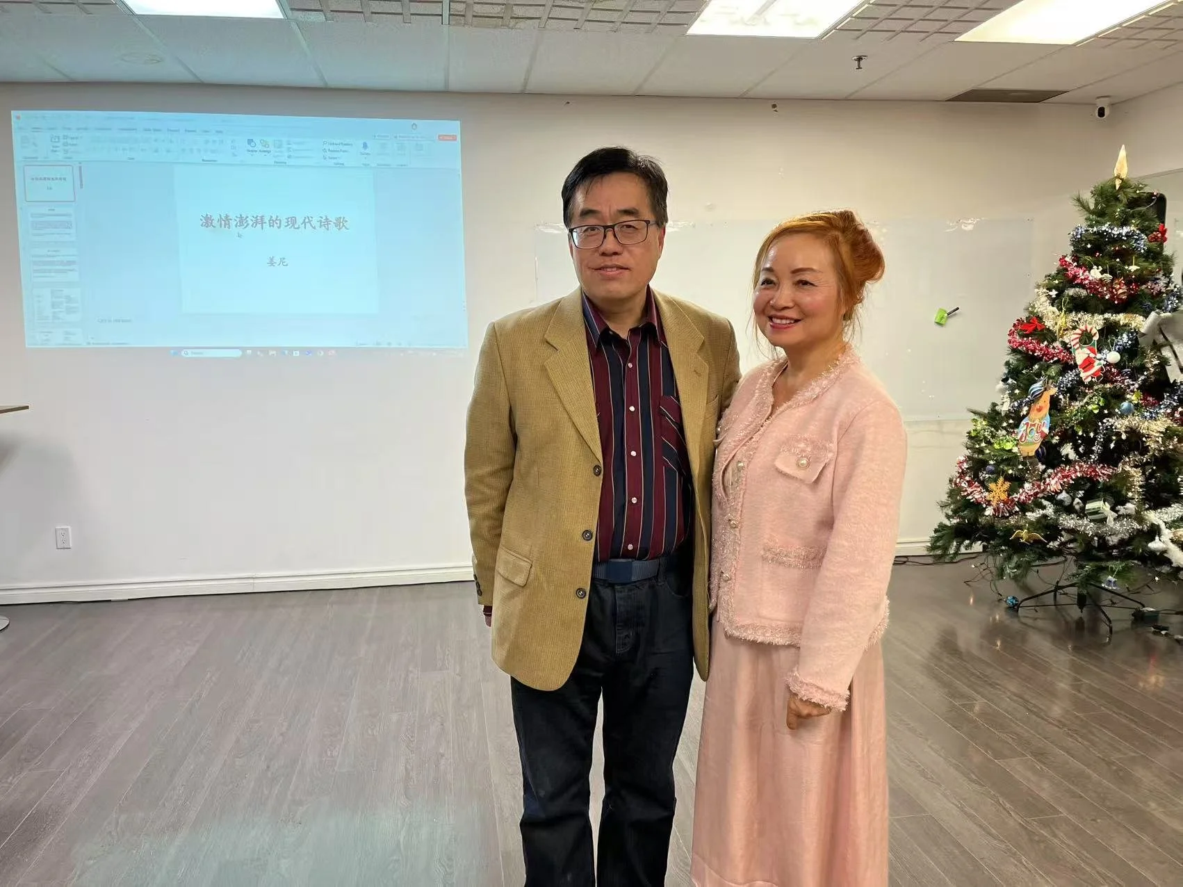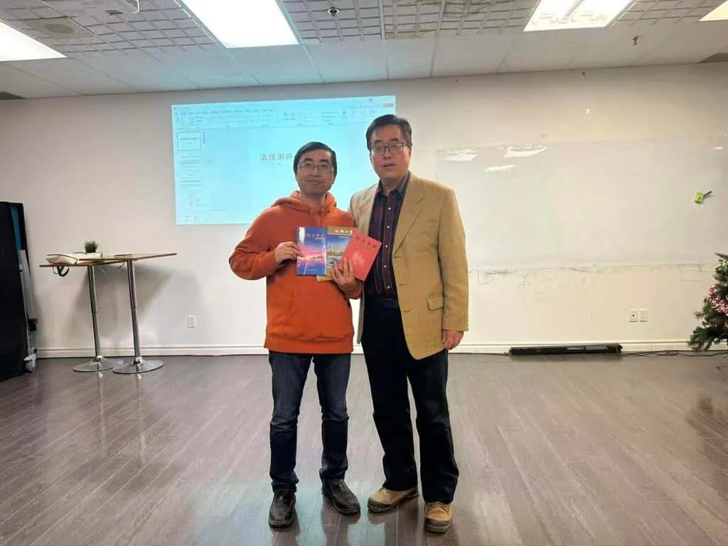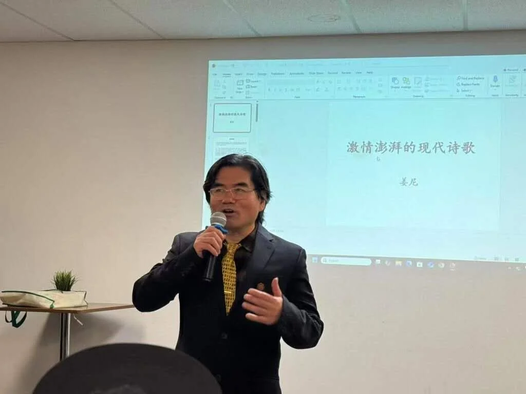 本次研讨会的核心亮点,来自兼具医学博士与诗人双重身份的姜尼——他长期深耕心血管病基础研究,更以满腔热忱笔耕中文诗坛,著作频丰。现场,姜尼向多伦多双快中文学校捐赠了个人诗集《情系多伦多》《秋风起了》《他乡四季》《诗夜无眠》四部,并以《激情澎湃的现代诗歌》为题发表主题演讲。其诗作以“真情朴实、意境优美、朗朗上口”的鲜明风格打动全场,《爱上多伦多》《我的城》《我的天堂》等代表作经现场深情演绎,字里行间的赤子情怀、乡土眷恋和对真善美的向往与追求,引得与会者共鸣不已,掌声迭起。