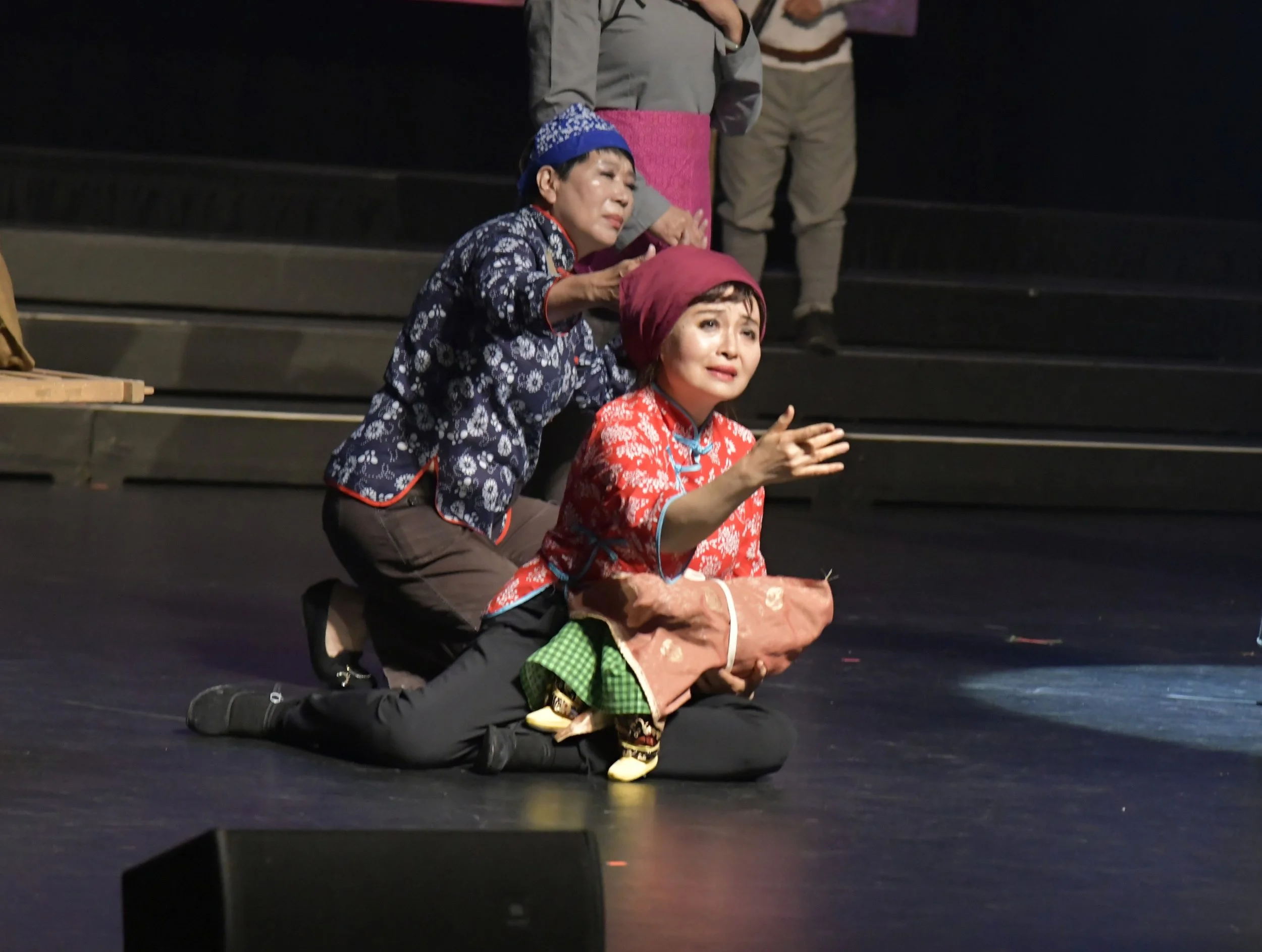 部分女生参加了《松花江上》逃荒民众的扮演,真情演绎,感人至深,受到观众一致的赞扬。