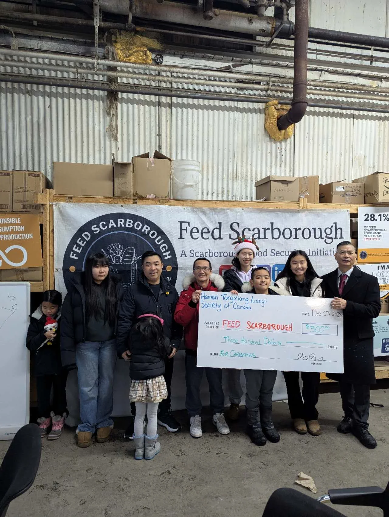 (《华文网》多伦多消息 特约记者素净)圣诞临近,天寒地冻,大多伦多地区却涌动着一股温暖的爱心潮。近日,加拿大海南同乡联谊会发起专项筹款,将总计1500加元的善款,亲手送达位于万锦、士嘉堡、北约克和旺市的四家食物银行,为社区中的困难家庭送去了一份特别的新年礼物。