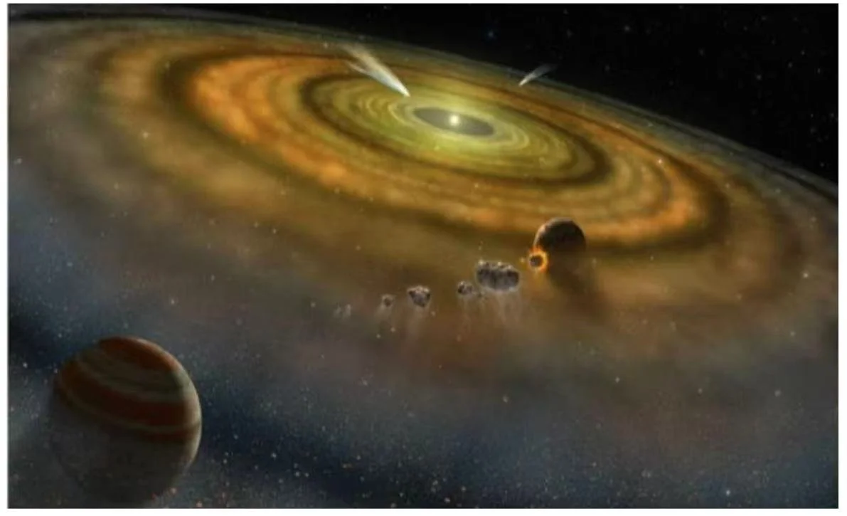 图2,太阳系原行星盘艺术图。图片来源:https://www.newscientist.com/article/2395992-how-asteroids-can-help-us-understand-our-place-in-the-cosmos/
