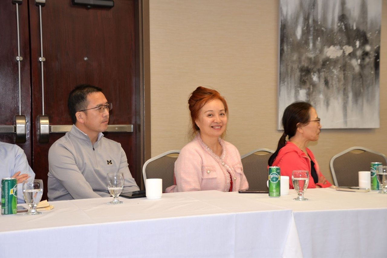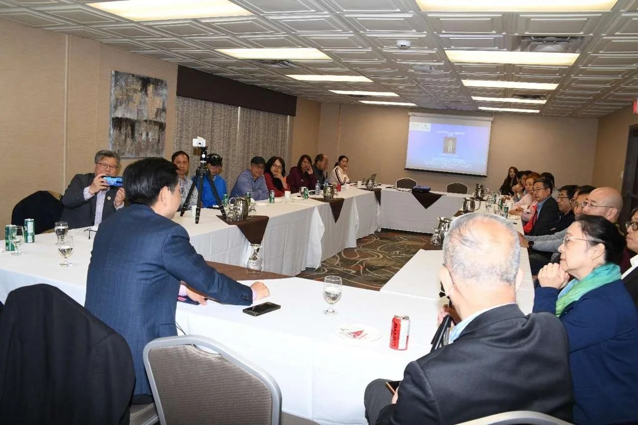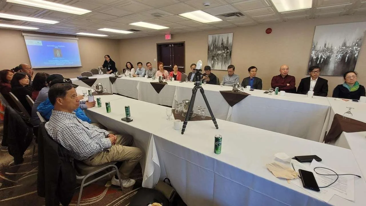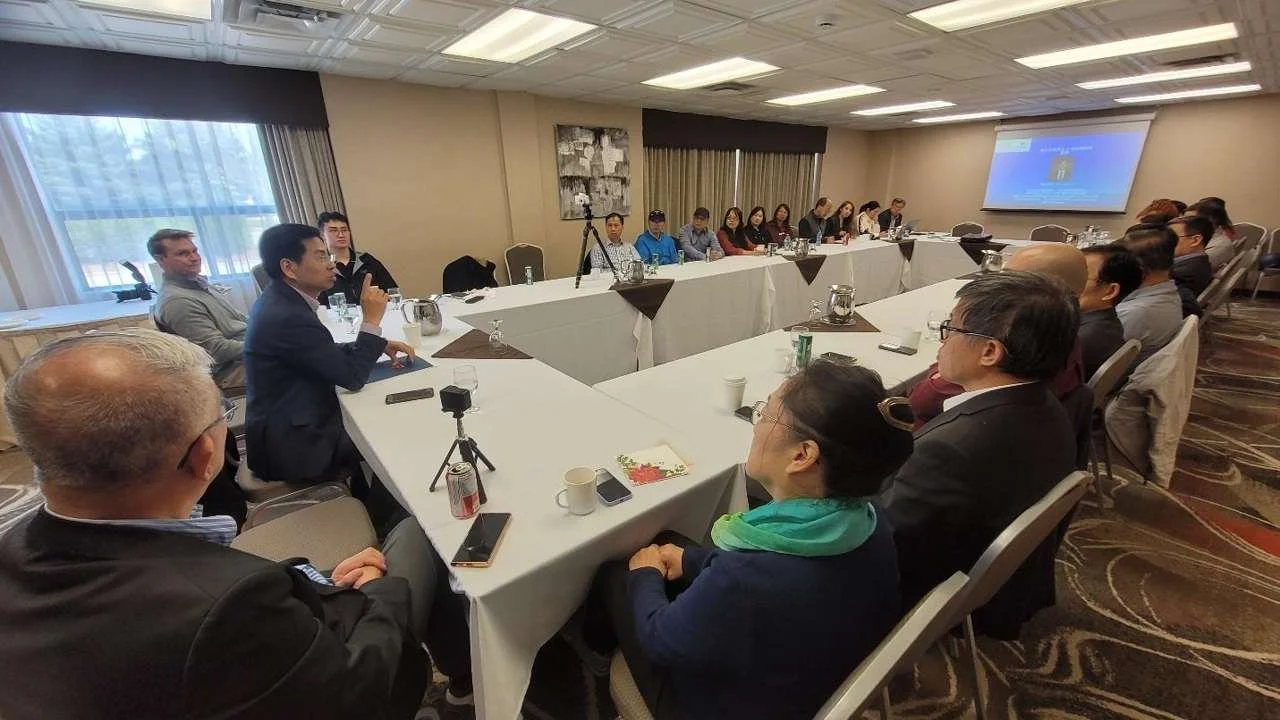 现场参观之后, 参观团队在大楼相邻的宾馆会议室举办座谈会。座谈会由加中经贸文化交流协会副会长兼西南财大加拿大校友会会长王慧主持。