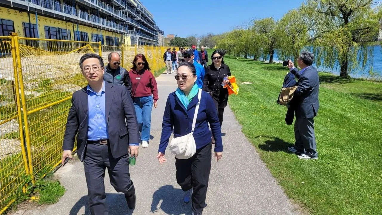 《北美之声》陈蓉 编发) 2025年5月10日,加中经贸文化交流协会(CCEA) 组织多伦多地区建筑行业资深专家、社团主要负责人,CCEA骨干成员及媒体代表等到CCEA会长兼Evertrust Development集团/TQC Construction 集团总裁周建成博士开发的在建豪华公寓-Upper Vista Welland Condos 工地参观访问,并进行座谈交流。