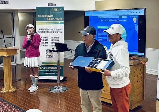 在获奖选手颁奖之后,晚会便进入到振奋人心的抽奖时刻;抽奖奖品有:CanBridge赞助的高尔夫球5盒:长江外汇赞助的精美茶具20套,PGMgolf赞助的高尔夫球礼品盒和高尔夫球1盒,Charlie Zou 提供的红酒三瓶;华夏良子加拿大总裁George Dong提供的经典全身按摩体验卷5张;晚宴抽奖大奖是一只新款的一号木球杆。另外,Royal Stoufville 赞助了晚宴的啤酒,百年陈皮行-新会梁胜记多伦多分行的徐磊明先生赞助的花生米等。
