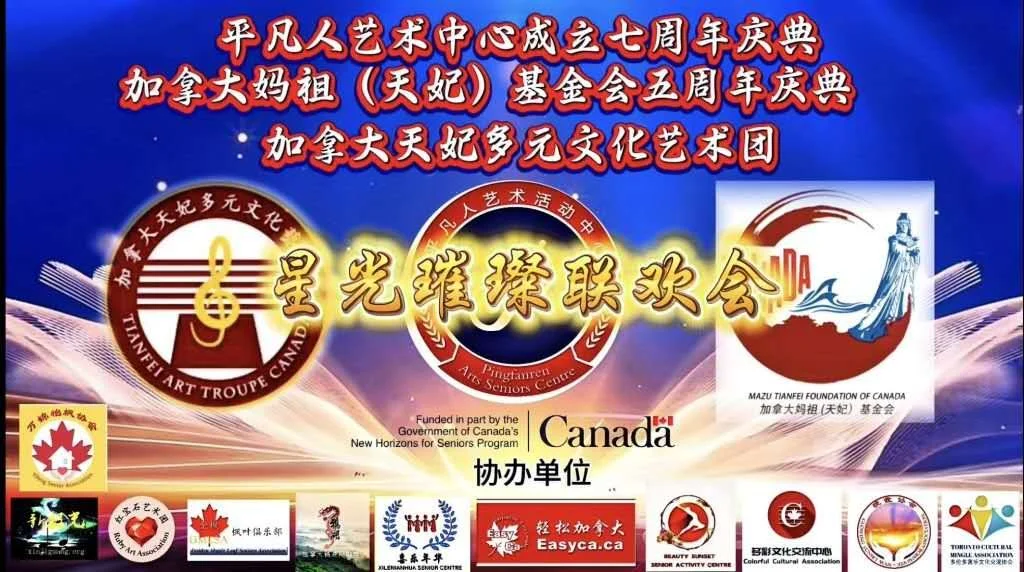 2025星光璀璨联欢会圆满落幕 由平凡人艺术中心/加拿大妈祖(天妃)基金会/加拿大天妃多元文化艺术团共同举办,协办单位:喜乐年华老年活动中心、俏夕阳老年艺术团、枫叶俱乐部、红宝石艺术团、晚霞协会、新极光艺术团、多彩文化交流协会、鸦湖同乡会、新华会怡枫分会、茗乐文化交流协会。