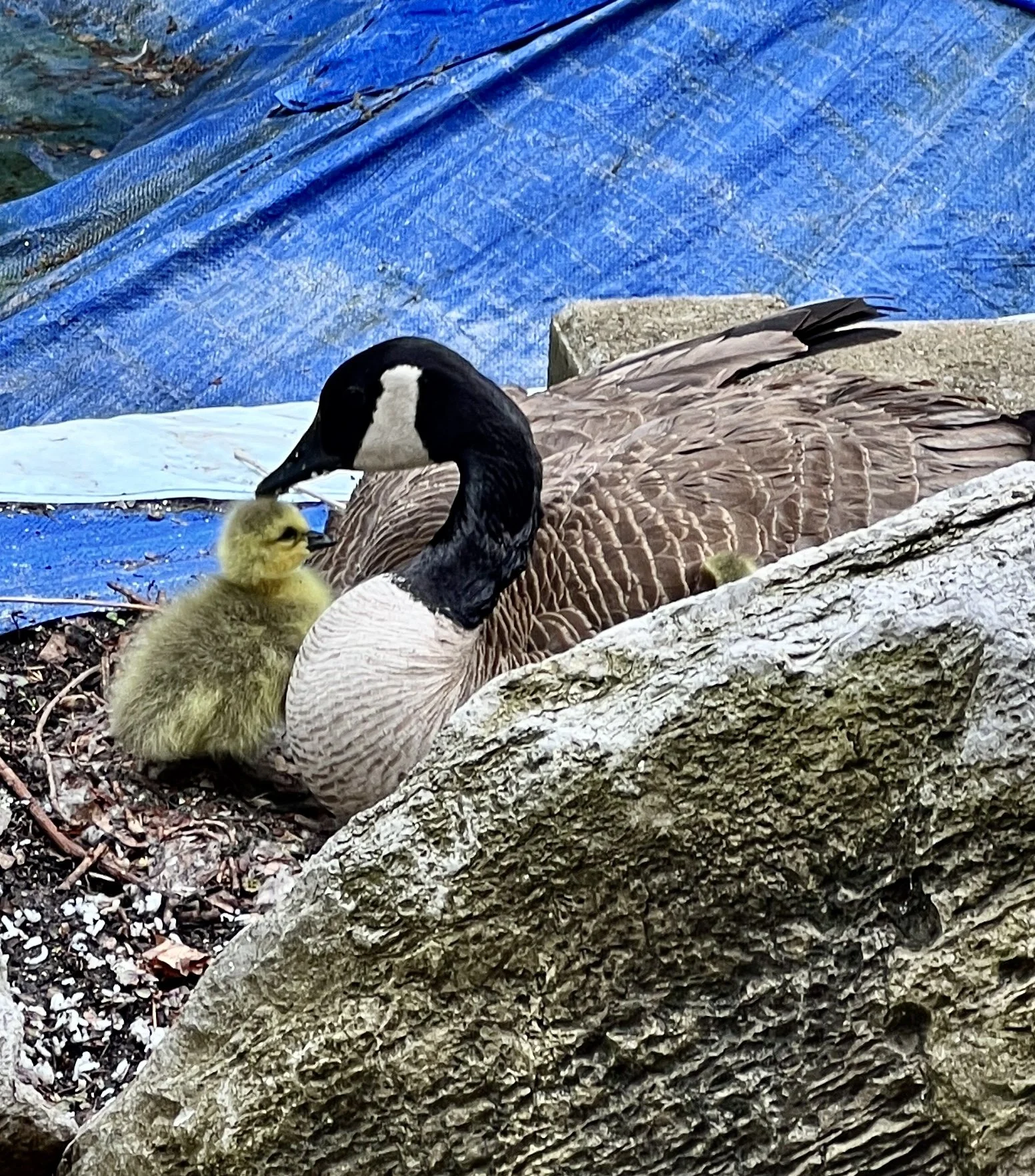 加拿大的大雁——我那心爱的“黑天鹅”——在经历了五十六个日夜的风霜与守候后,终于孵出了第一个小宝宝。随后的两天里,又陆续有四只鹅宝宝破壳而出。唯独最后一颗蛋,仍静静地躺在那里,不知是姗姗来迟,还是命运另有安排,至今未见动静。
