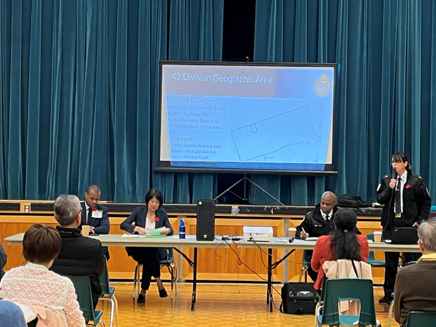 10月29日,多伦多市长邹至蕙与市议员麦智谋以及市府相关人员出席了世嘉堡北社区安全工作会议。此次活动由多伦多警局42分局与社区相关机构组织,高级督察李安携警队同仁在皇港学校体育馆集体亮相。会议主题为:同心携力预防罪案,一起打造更安全社区。会议气氛友好热烈,形式活泼而融洽。在此过程中,邹至蕙听取该区议员麦智谋、42分局高级督察李安介绍了社区安全的相关问题,和与会社区居民以及相关人士亲切互动,并就居民关心的社区安全的相关问题解答和解释。