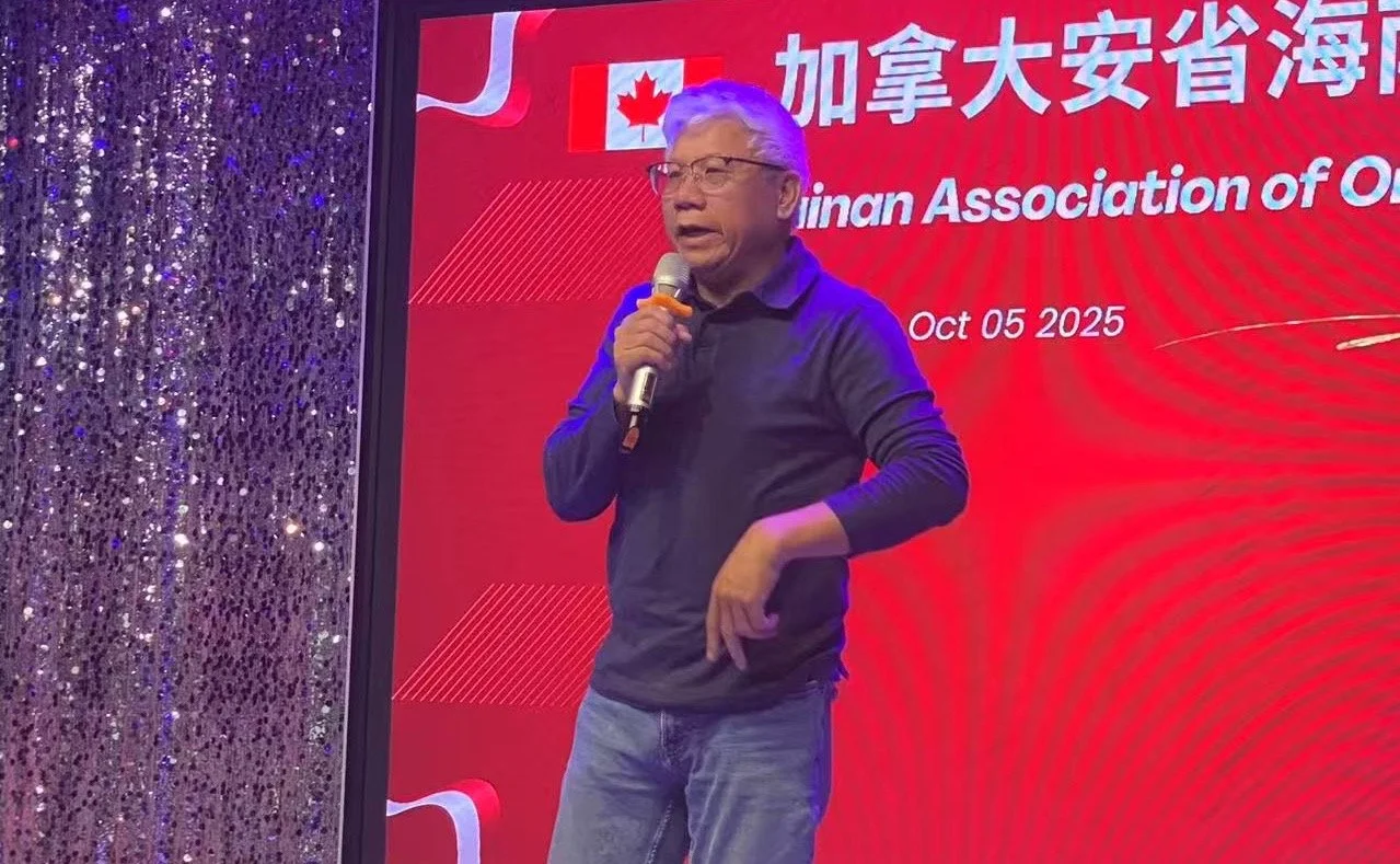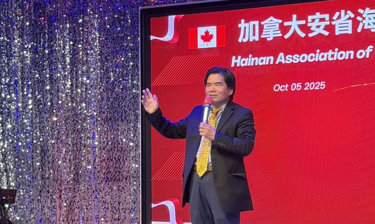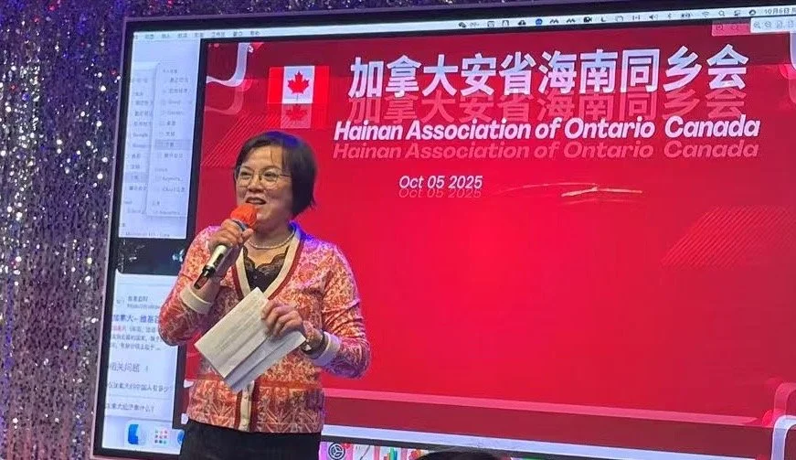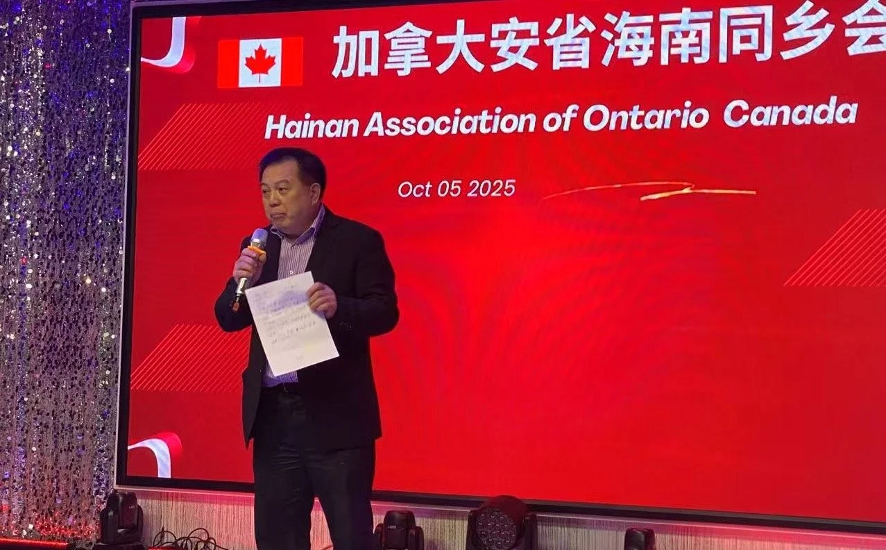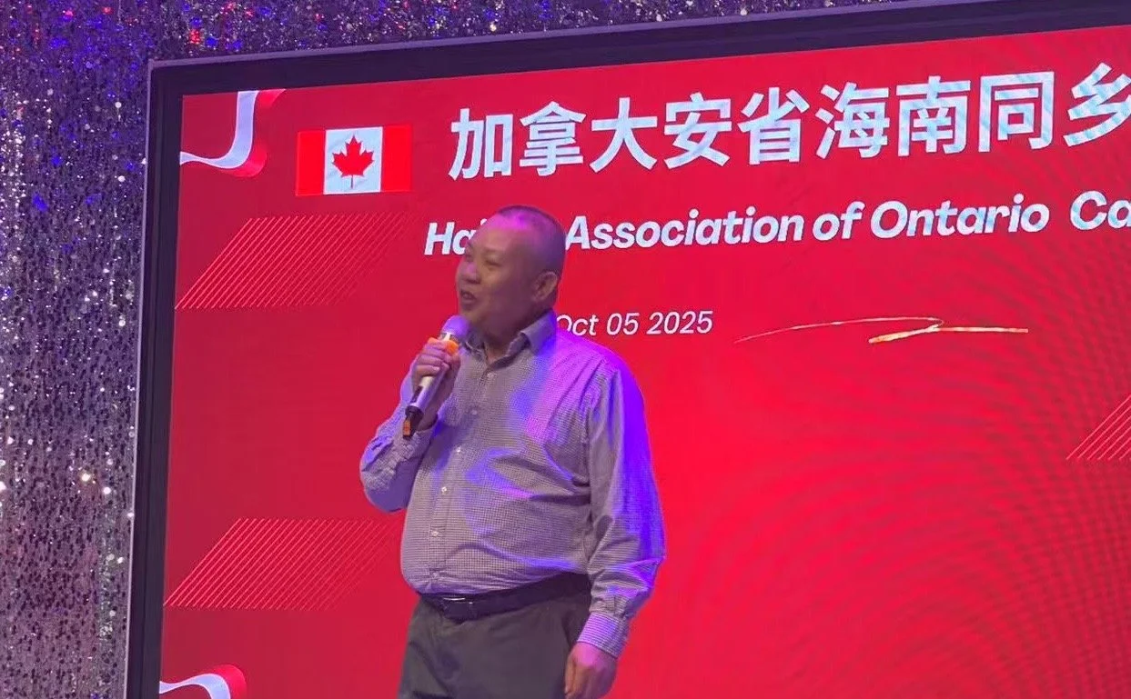 加拿大安省海南同乡会会长林野先生登台致辞:“今夜我们相聚于加国,思琼州故园,以味觉为舟,以乡音为楫,在加国秋夜里共溯南海暖流。”他说,“中秋节象征着团圆、思念与感恩。对于我们这些旅居海外的海南人而言,它更是凝聚乡情、联络感情的重要时刻。因为有大家的支持与参与,我们同乡会才能越来越壮大。”林野还对罗绪强老会长表达问候与祝福,并为他近日康复送上诚挚祈愿。林野指出,安省海南同乡会在全加拿大独具特色,我们拥有自己的会馆,是前辈们留下的家业。林野还强调培养新人,鼓励年轻一代接棒与传承,将海南同乡会的香火在加拿大一代代延续下去。