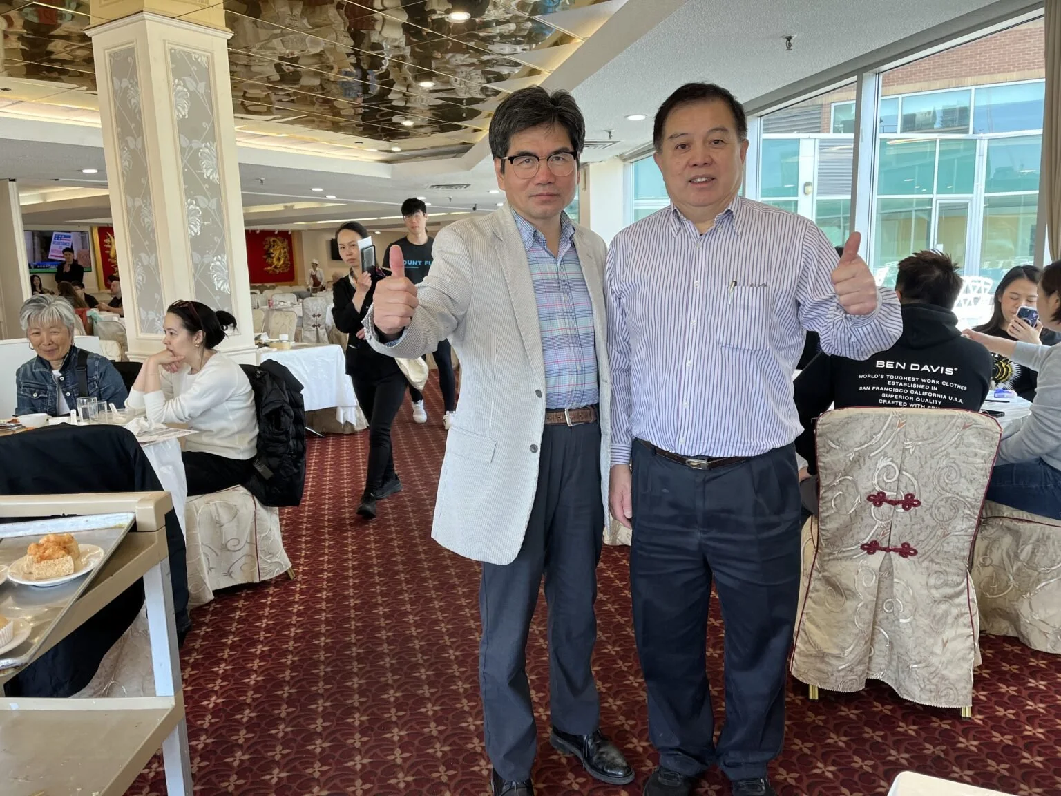 感恩节假日期间,著名侨领、加拿大安省海南同乡会会长林野先生在多伦多龙翔酒店会见了加拿大中文作家协会主席燕飞。以茶代酒,再次共思琼州故园。宾主尽欢,相谈甚洽。