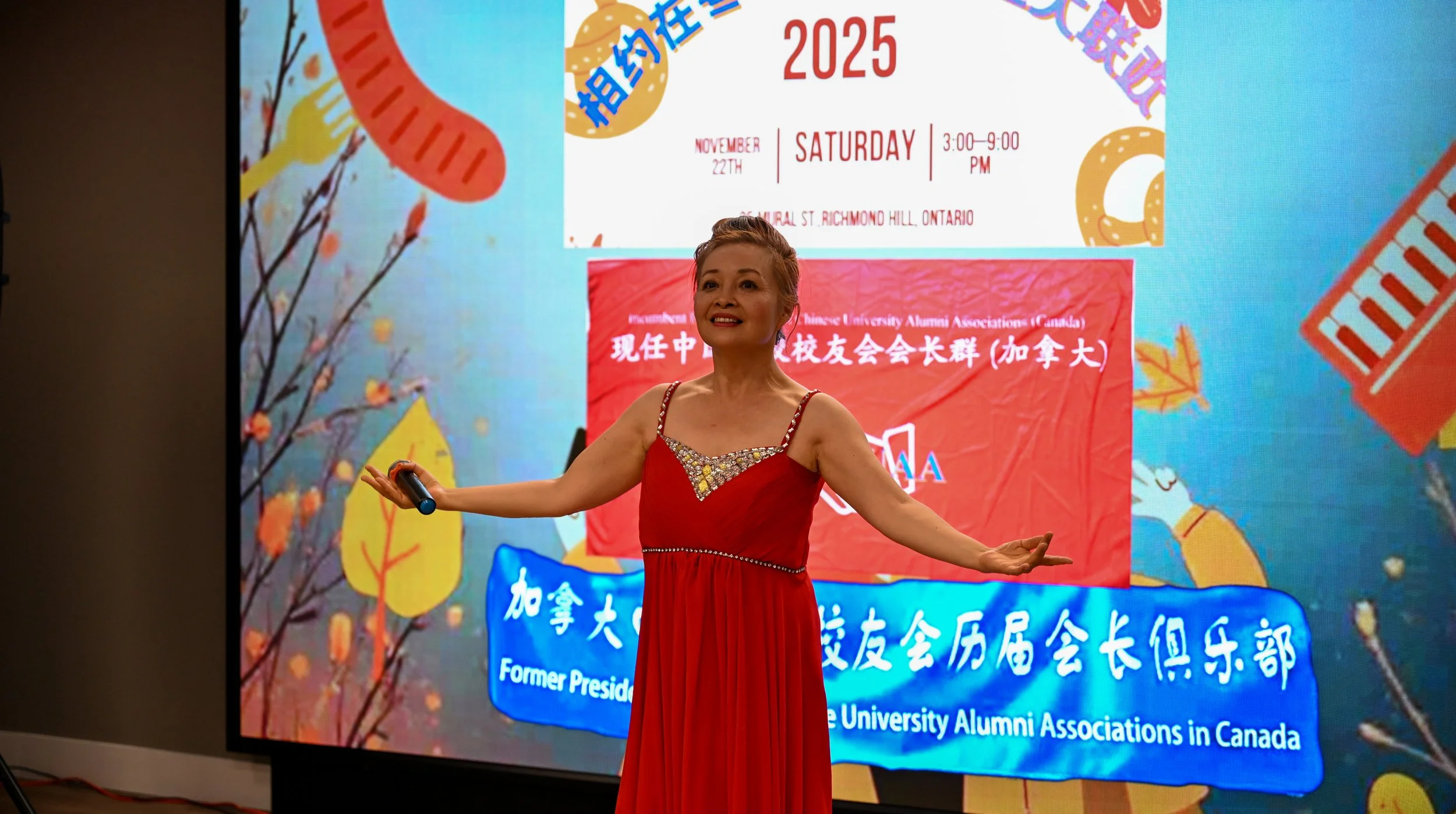 这次大联欢活动上半场是由高校社区著名主持人、北京邮电大学加拿大校友会前会长陈丹蕾主持。她优雅的主持风格收获了热烈的掌声。