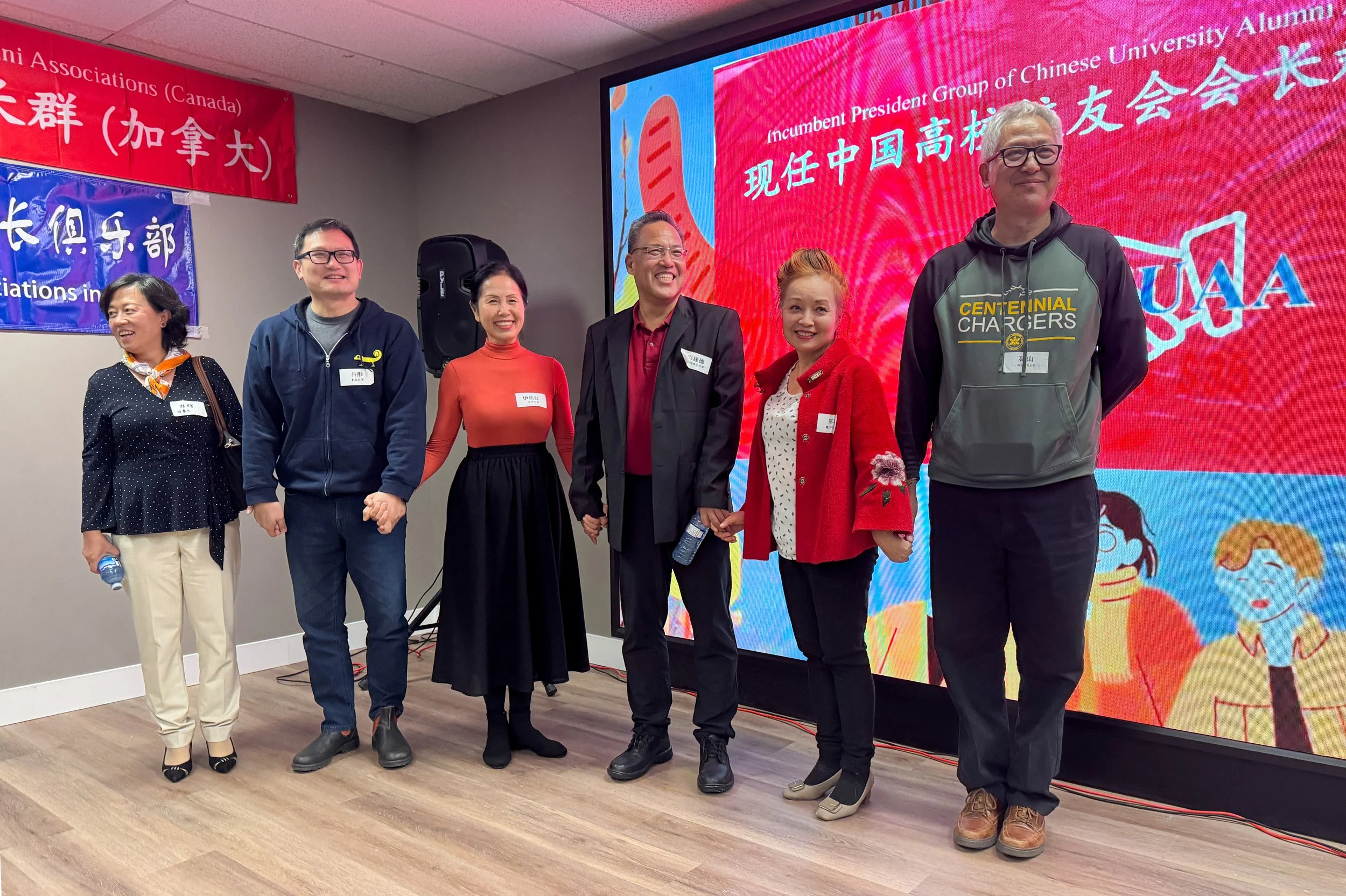 本次活动也得到了地产开发公司 Costone Group 的大力支持。副总裁、同时也是北京林业大学加拿大校友会会长的刘玉海先生慷慨提供了公司可容纳百余人的多功能厅作为活动场地。宽敞明亮的大厅、巨大的落地 LED 屏幕,为晚会增添了高雅与现代的气息,让整个活动更显隆重。他说他们公司一直致力于地产开发项目,现在有些新型的项目在运作当中,请感兴趣的会长找他垂询。