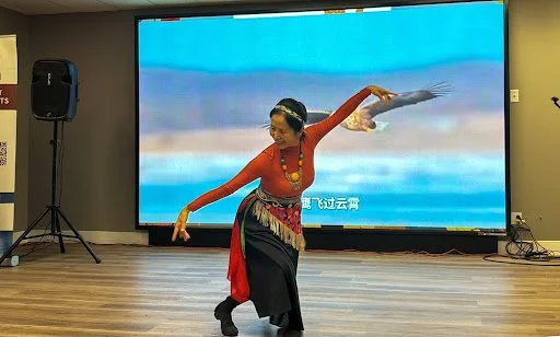 紧接着,伊铁红会长带来的藏族舞蹈《苍穹唤》舞姿优美,仿佛把大家带入辽阔的草原。